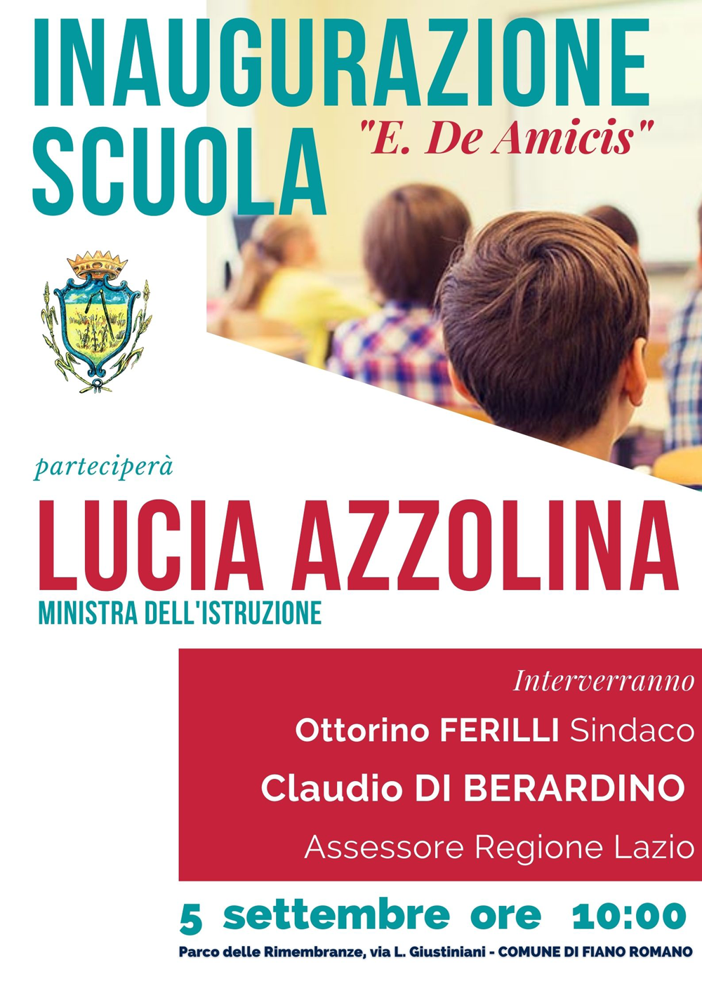 Fiano Romano 4 settembre | Domani alle ore 10:00 presso il parco delle Rimembranze, si svolgerà la cerimonia di inaugurazione della ristrutturata scuola “E. De Amicis”, edificio storico di Fiano Romano. All’inaugurazione parteciperanno la Ministra Lucia Azzolina Claudio Di Berardino, Assessore Lavoro e nuovi diritti, Formazione, Scuola e diritto allo studio universitario, Politiche per la ricostruzione della Regione Lazio.