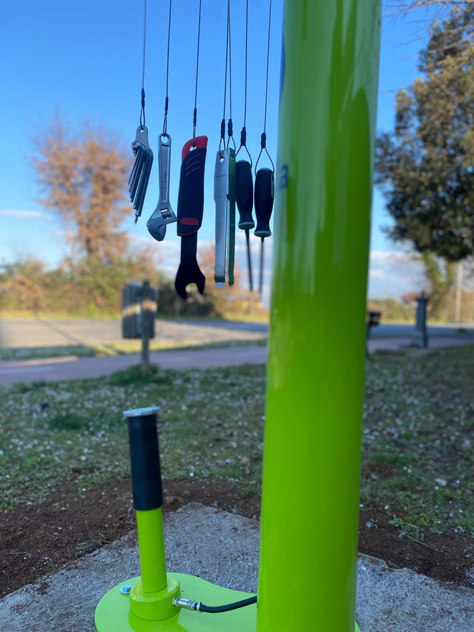 Si tratta di stazioni di assistenza dotate di ogni attrezzo utile per la manutenzione di emergenza per biciclette.
