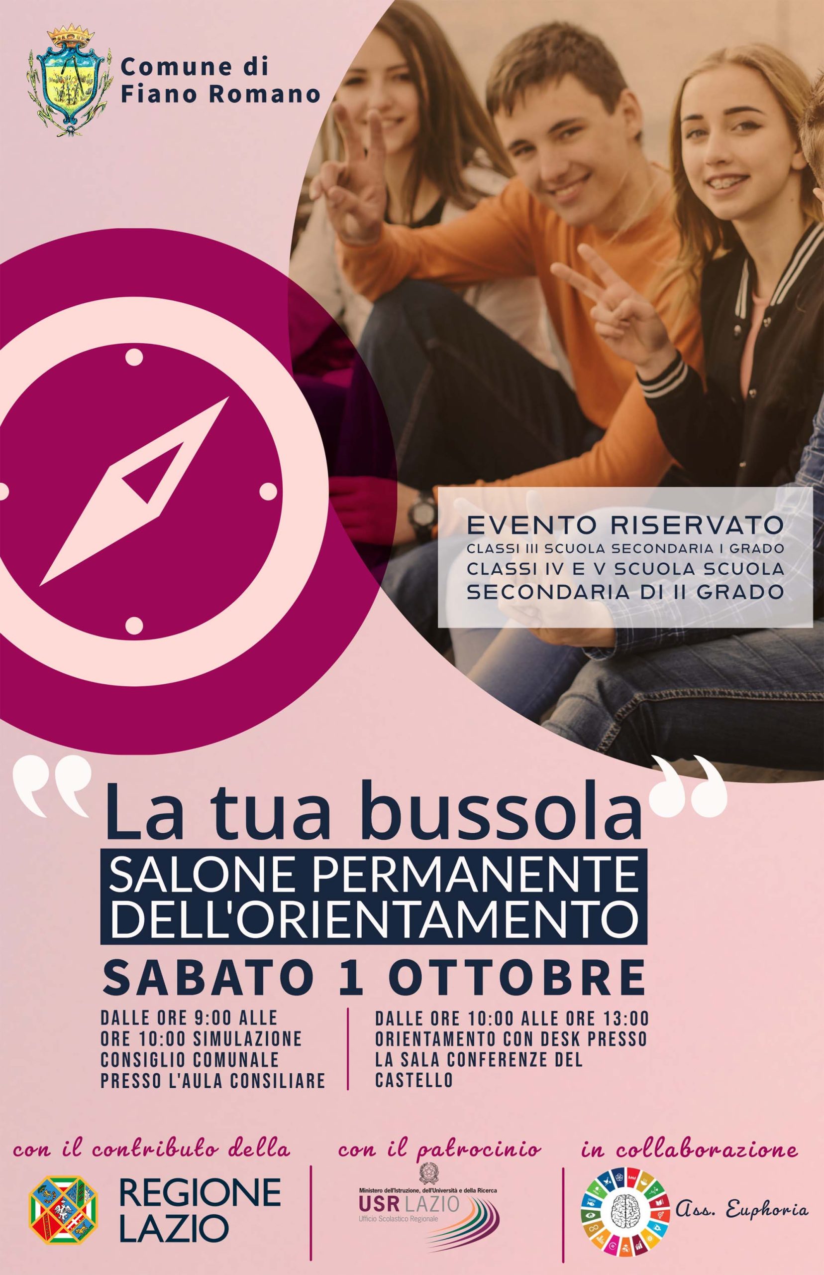 “La tua Bussola” sarà l’inizio di un percorso che porterà il Comune di Fiano Romano al consolidamento di un salone permanente dell’orientamento le cui attività saranno, già da sabato prossimo, svolte attraverso le seguenti direttrici: