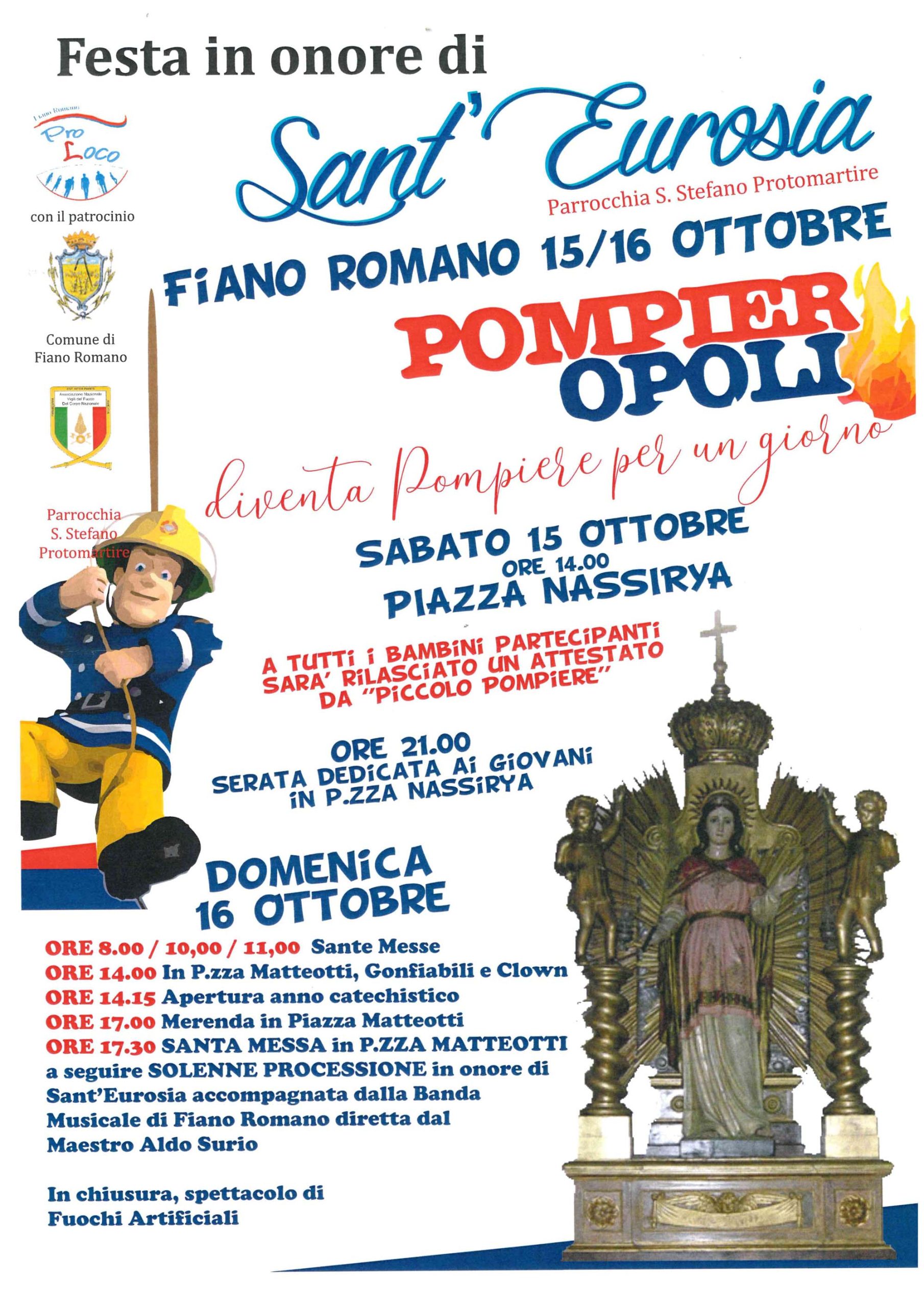 ore 17:30 Piazza Matteotti – Santa messa e a seguire SOLENNE PROCESSIONE in onore di Sant’Eurosia accompagnata dalla Banda Musicale di Fiano Romano diretta dal Maestro Aldo Surio