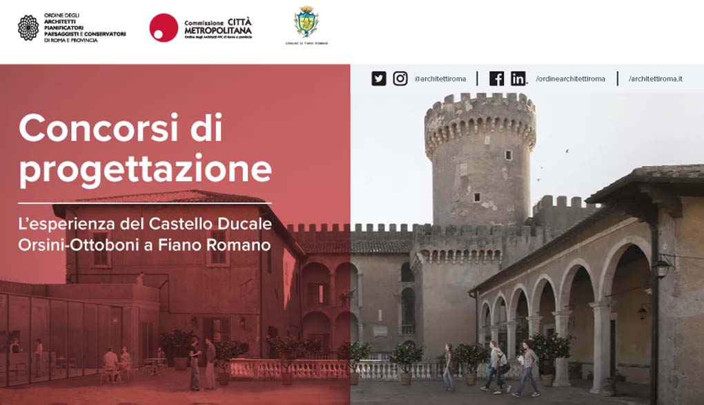 Durante il convegno sarà presentato il progetto vincitore del concorso per il “Recupero e valorizzazione del secondo piano e della torre circolare del Castello Ducale Orsini-Ottoboni a Fiano Romano”, promosso dal Comune di Fiano Romano in collaborazione con l’Ordine degli Architetti di Roma e primo concorso di progettazione in due gradi ospitato ed espletato sulla piattaforma CAN – Competition Architecture Network dell’OAR.