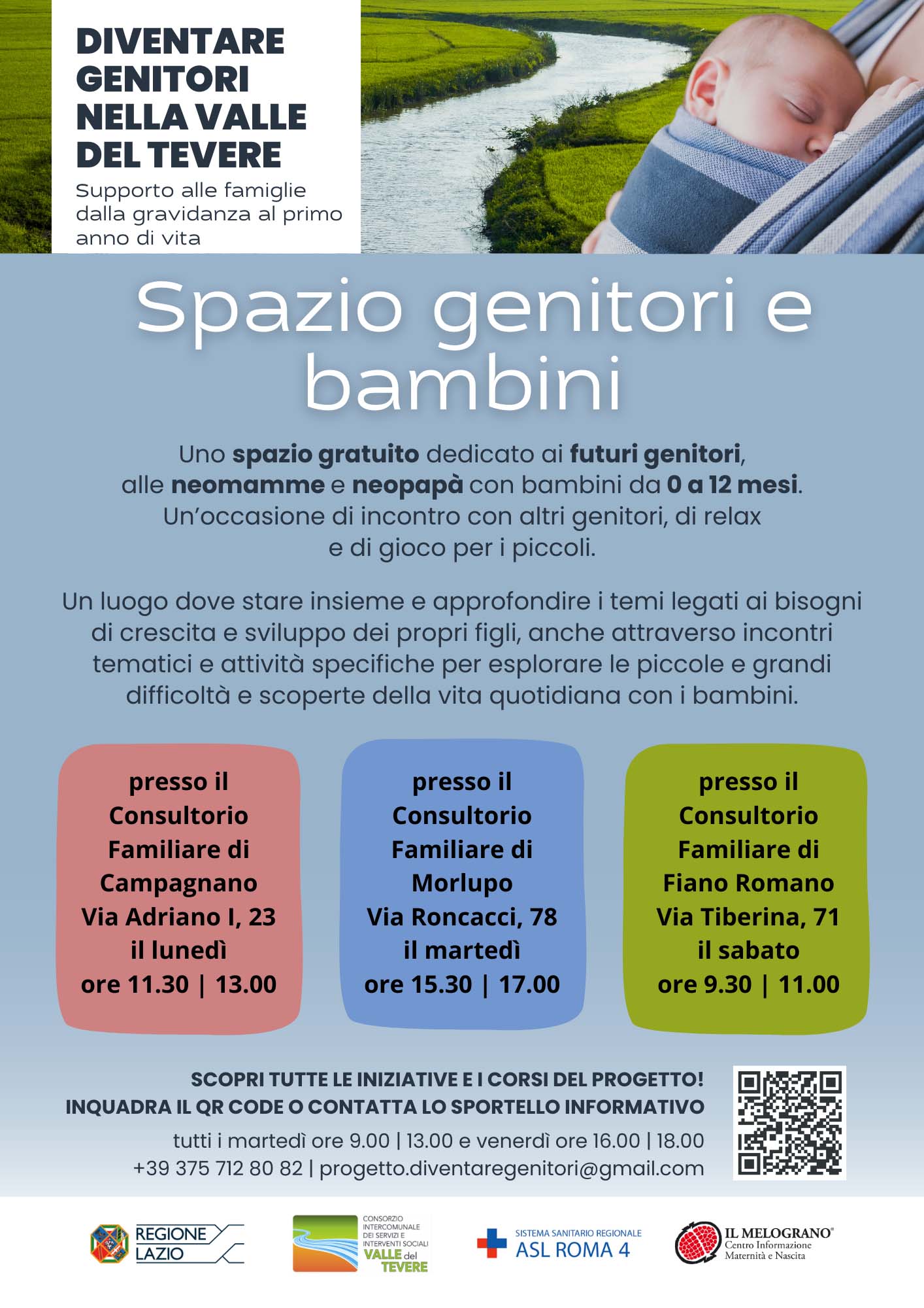 Per saperne di più sul Progetto “Diventare genitori nella Valle del Tevere” o ricevere informazioni e prenotarsi ai corsi contattare lo Sportello Informativo: