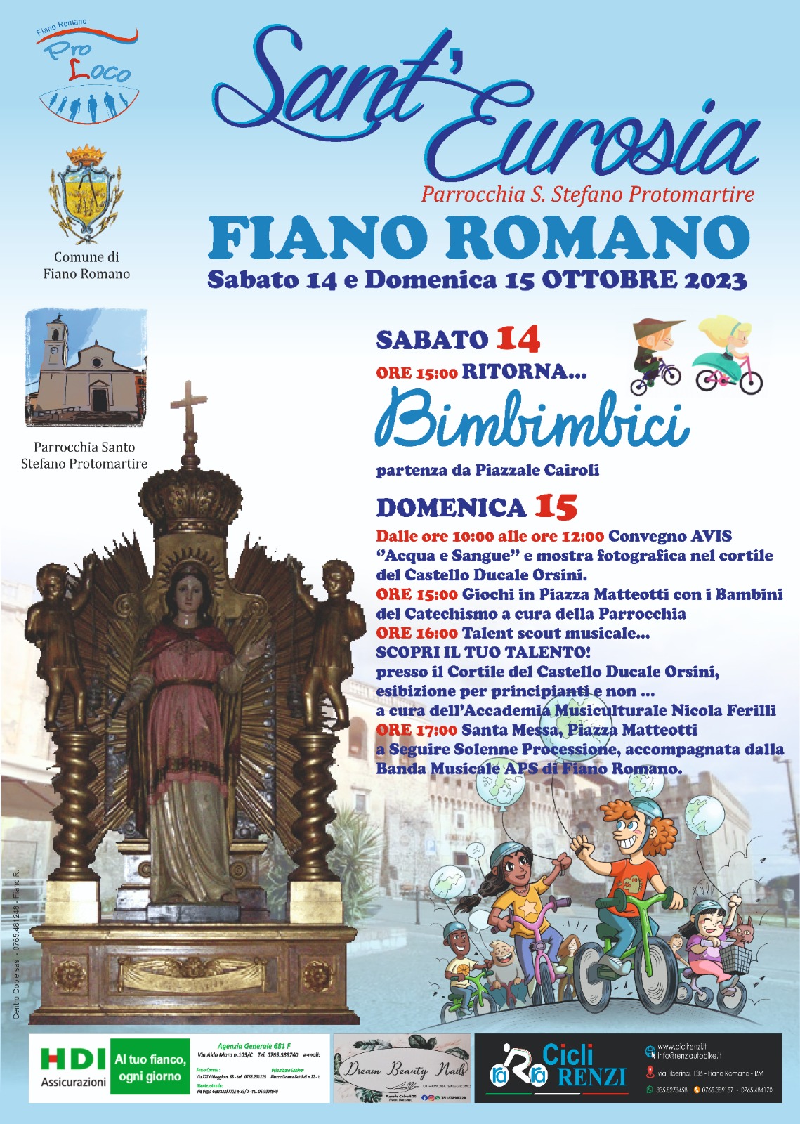 ore 17:00 Piazza Matteotti – Santa messa e a seguire SOLENNE PROCESSIONE in onore di Sant’Eurosia accompagnata dalla Banda Musicale APS di Fiano Romano