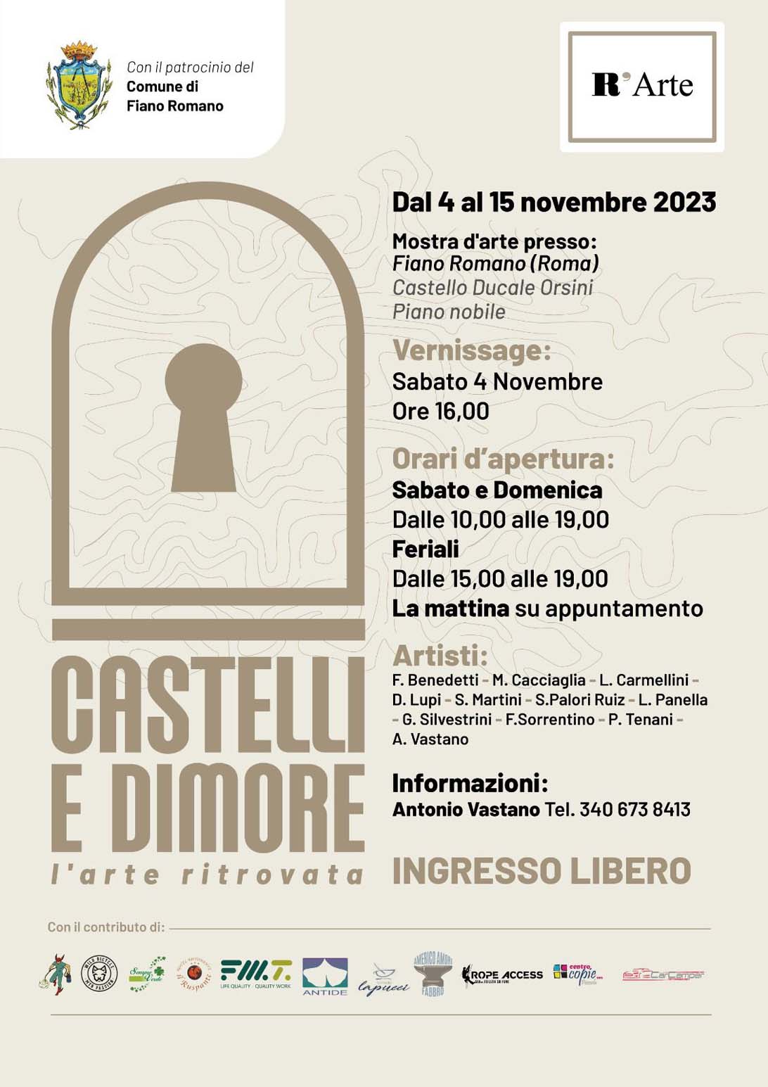 Mostra “Castelli e dimore l’arte ritrovata ” organizzata dal collettivo Ritrov’Arte dal 4 al 15 novembre 2023
