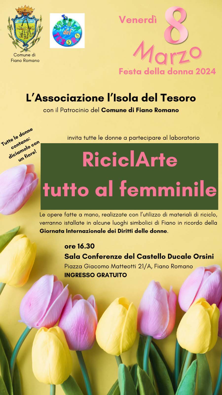 L’Associazione culturale l’ Isola del Tesoro con il patrocinio del Comune di Fiano Romano invita tutte le donne a partecipare al laboratorio dal titolo “RiciclArte tutto al femminile.”.