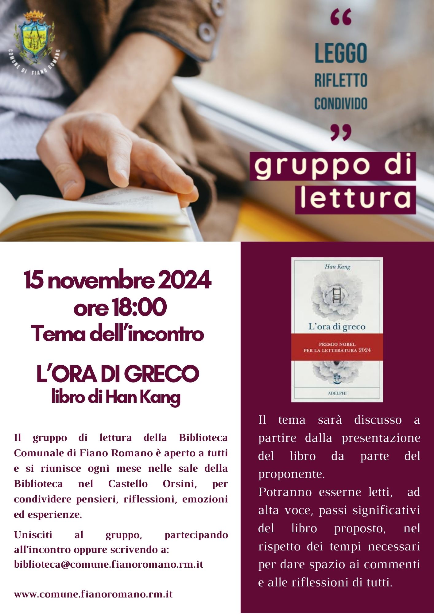 Unisciti al gruppo, partecipando all’incontro oppure scrivendo a biblioteca@comune.fianoromano.rm.it