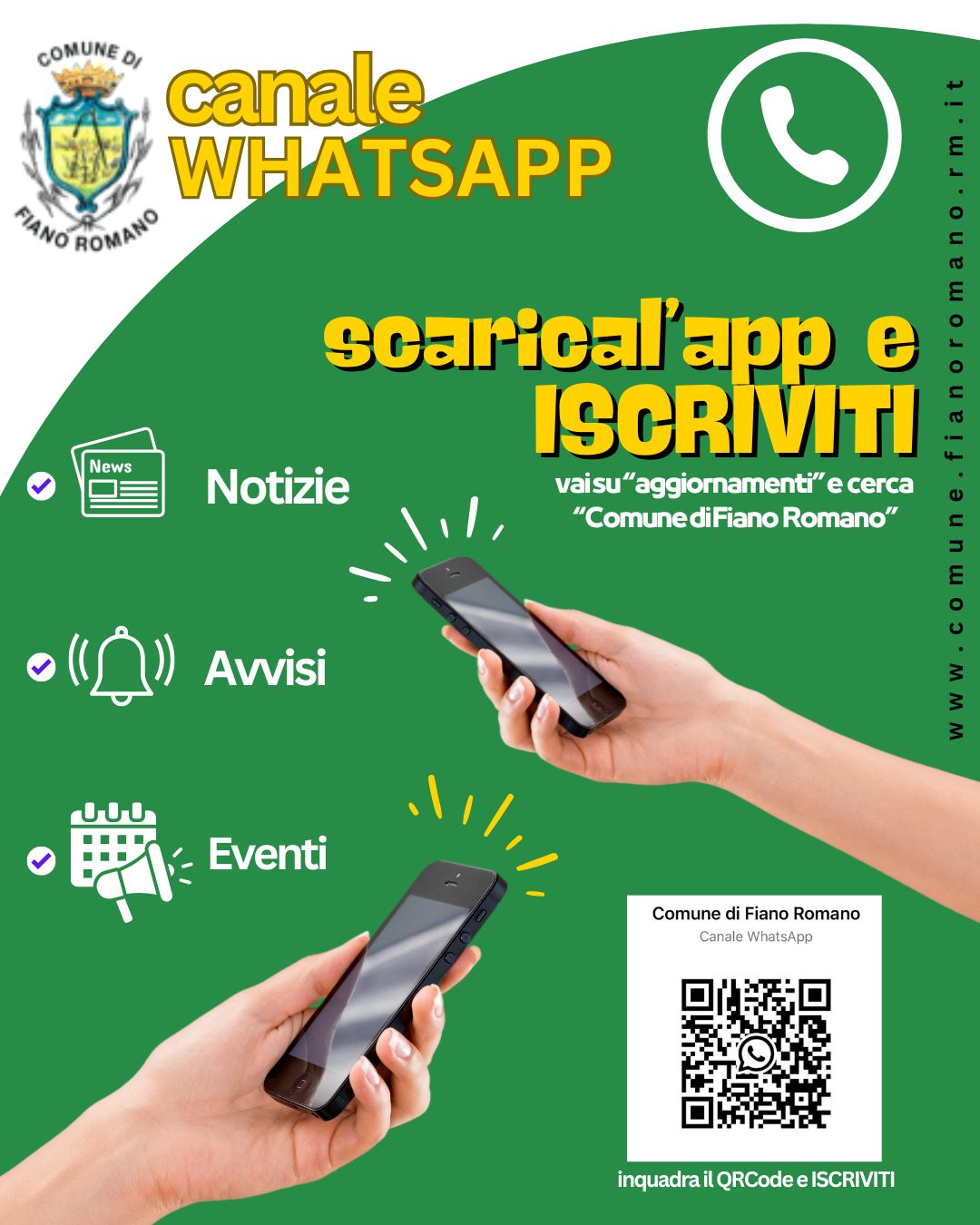 A seguito dell’attivazione del Canale Telegram , il Comune ha deciso di avviare anche un Canale WhatsApp, il quale è finalizzato a garantire una diffusione tempestiva e accessibile delle informazioni, coinvolgendo il maggior numero di cittadini possibile. Attraverso questo canale, si ricevono aggiornamenti in tempo reale riguardanti notizie, avvisi e informazioni di rilevanza pubblica. Per unirti al Canale WhatsApp, è sufficiente navigare alla sezione “aggiornamenti” e selezionare “iscriviti al Canale“: in questo modo, avrai accesso a comunicazioni importanti riguardanti emergenze, allerte meteorologiche, avvisi della protezione civile, viabilità, ordinanze, servizi comunali e dettagli su eventi, iniziative e attività culturali, sociali e ricreative organizzate sul territorio. È importante sottolineare che la comunicazione avviene in modo unidirezionale e che la privacy degli iscritti è rigorosamente rispettata; infatti, i dati personali degli utenti non sono resi pubblici, nemmeno in caso di interazioni con i post. Si precisa che questo servizio non rappresenta una forma di comunicazione obbligatoria da parte del Comune e non sostituisce le procedure ufficiali di comunicazione e notifica previste dalla normativa vigente. Pertanto, si invita calorosamente la cittadinanza a partecipare attivamente a questo Canale WhatsApp per ricevere costanti aggiornamenti e rimanere informati sulle attività e i servizi offerti dal Comune.